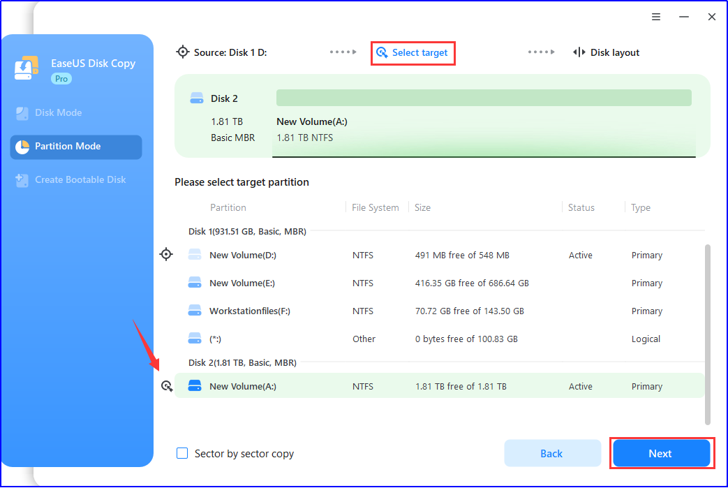 - The size of target partition should be equal or larger than the source partition when using sector by sector clone.