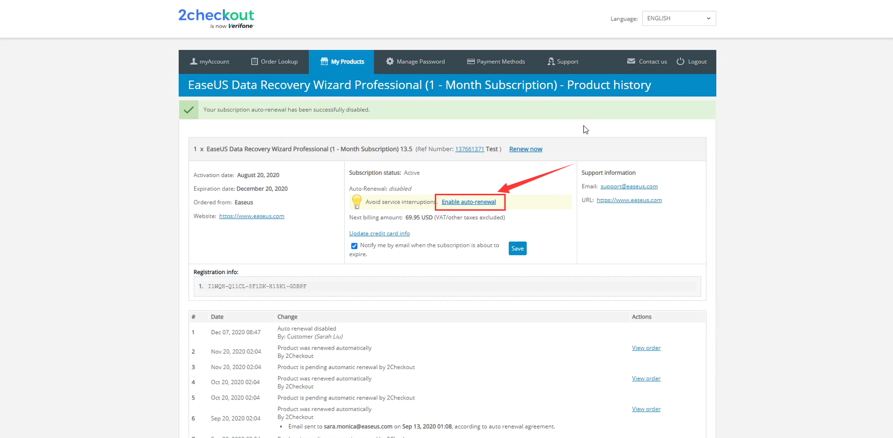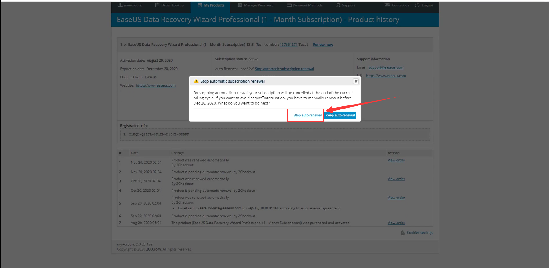 EaseUS cooperates with two shopping cart vendors, 2Checkout and Cleverbridge. Before you unsubscribe from your renewal service, please check your order email to confirm which vendors your order belongs to and follow instructions accordingly.