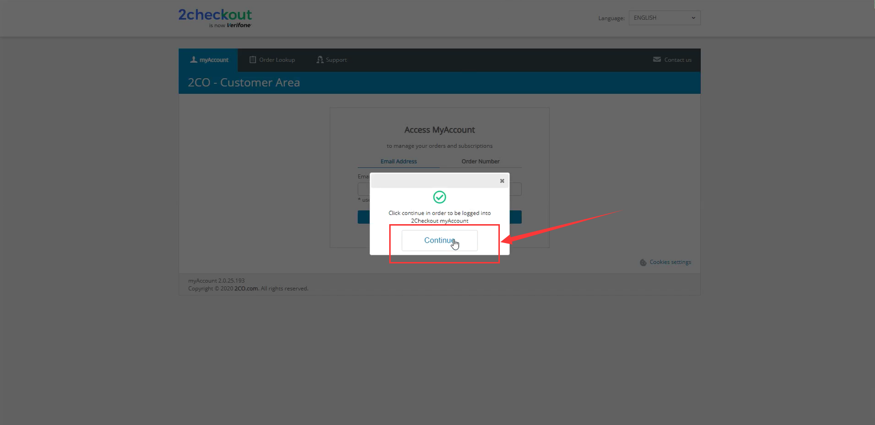 Step 1. Click HERE to access 2Checkout Customer Area. You can also find the Login portal in the confirmation email sent by 2Checkout Team.